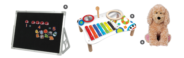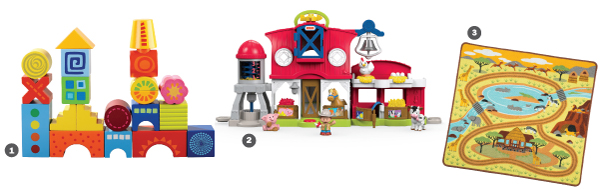 Bring tales to life with these four 10- inch-tall barnyard pals. Let the little ones take them to a corner where they can reenact the story or spin a yarn of their own. ($49.99, all ages, constructiveplaythings.com)