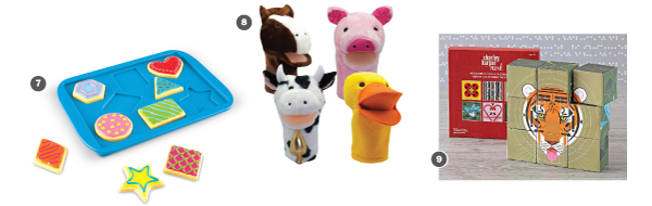 Budding bakers not only learn their colors and shapes but practice their spatial and fine-motor skills by matching colorful treats to the shapes on the baking sheet. ($19.99, ages 2 and up, learningresources.com)