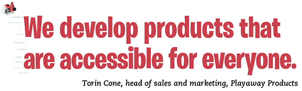 Playaway gives schools and libraries the tools to promote literacy and bridge the digital divide. “We develop products that are accessible for everyone,” says Torin Cone, head of sales and marketing. With these tools, Cone says, students don’t need a home internet connection to access high-quality educational materials, which helps level the playing field.