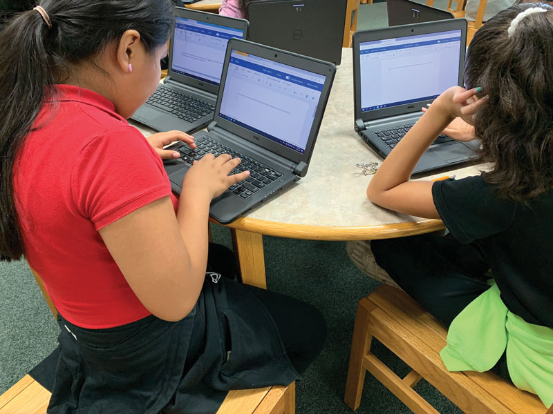 Fifth graders at the Thurgood Marshall Middle School library in Antioch, TN, learn to work in Microsoft Word. |