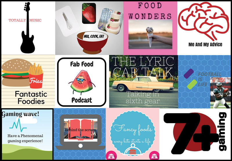 Logos from podcasts by students in the Iowa City School DistrictPhoto courtesy of Andrew Fenstermaker\Iowa City School District |
