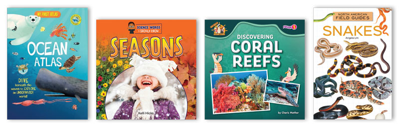 The grossest and strangest nature has to offer is outlined in “Icky World” (Gareth Stevens) and “Look!” (Creative Company). “My First Atlas” (Rosen/Windmill) boasts high-interest science topics and dazzling illustrations. ABDO’s “North American Field Guides Set 3” will ensure budding middle-school naturalists can identify what they see in the wild.