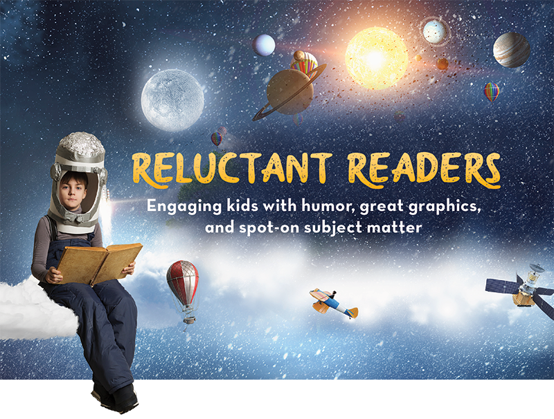 Reluctant and struggling readers come in every stripe from every kind of background, and publishers are creating books to appeal to all of them. From adorable board books to action-packed adventures to icky bugs and dinosaurs to lifelike teen situations, publishers want every kid or teen to close a book with renewed confidence in their reading ability.