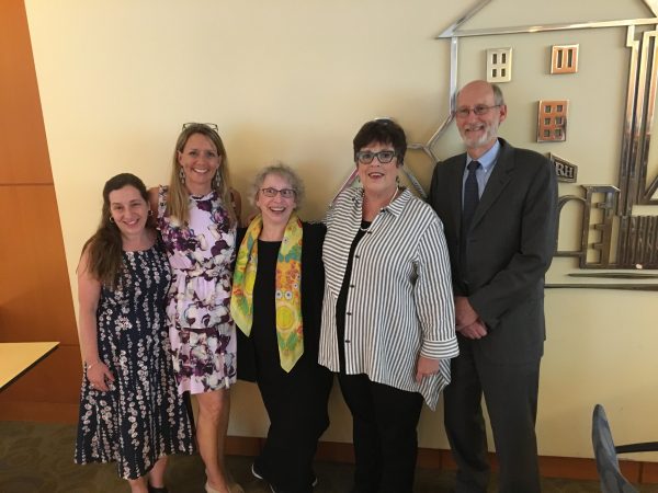 Speakers at the event: from left, Susannah Richards, Eastern Connecticut State University; Ellen Keiter, the Carle Museum; Lisa Von Drasek, the Kerlan Collection; Ellen Ruffin, the de Grummond Children's Literature Collection; and John Bidwell, the Morgan Library