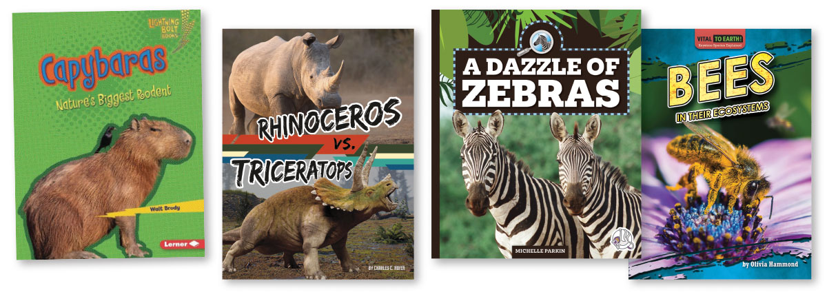 This season’s animal series demonstrate how a strong collection can provide useful information in a variety of ways. There are field guides that cover hundreds of animals, along with books that focus on groups of animals, both wild and domestic. Some sets highlight the unique features that animals may share, including great size, methods of moving, and the use of electricity. There are also series covering animal battles, keystone species, predators, newly discovered species, and comic book tales of heroic pets. The best of these utilize clear and lively writing paired with well-chosen visual content to engage young readers and provide opportunities for them to learn about the always fascinating world of animals.