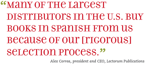 “Many of the largest distributors in the U.S. buy books in Spanish from us because of our [stringent] selection process,” says President and CEO Alex Correa. “If it’s K through 8, we have read every single page of every single book.” Of the 1,000 or so children’s and middle grade titles Lectorum reviews each year, about 500 to 600 end up in its catalog.
