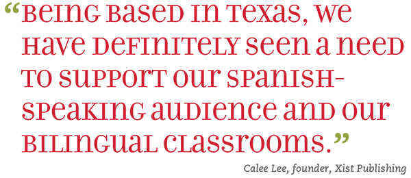 Most years, Xist publishes Spanish-language translations of about 10 percent of their titles. “Being based in Texas, we have definitely seen a need to support our Spanish-speaking audience and our bilingual classrooms. So, as we look to the future, we’re trying to release more titles in both English and Spanish editions,” Lee says. This year, the publisher is putting out its first original series in Spanish with accompanying English translations. The complete 32-title Spanish-first series, “Little Lectores” (“Little Readers”) by Katrina Streza and Ariana Vargas, publishes in September 2023 in both hardcover and paperback editions.