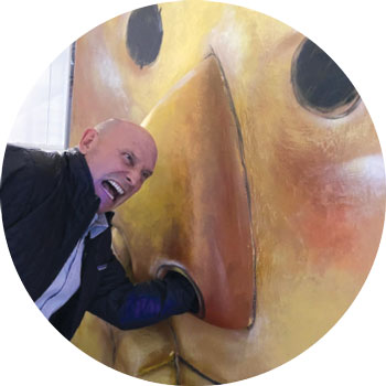 From the left: Brian Selznick with Pettid; The No, David! display, with pickable nose. |