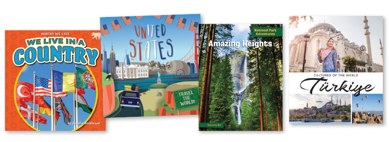 This fall’s geography books offer something for everyone, including country introductions for young readers, in-depth resources for older readers, and basic geography concepts suitable for all ages. These latest releases have colorful, attractive pages that supplement the well-written text. While most books focus on world exploration and cultural awareness, a few series are devoted to understanding maps, the national parks, and learning about different types of communities. Overall, this season has an abundance of great titles that will enhance any collection.