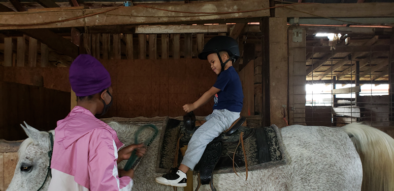 “When we got there, we went directly into the stables,” says Evans. “The boys were immediately in love. They met the horses and fed them. Caitlin let them get to know the horses while she prepared the things for their first ride. It was a pleasure seeing them interact with the horses.