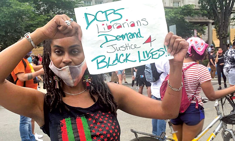 Nijma Esad, media specialist at Charles Hart Middle School in Washington, DC, at a June 5 march in DC. |