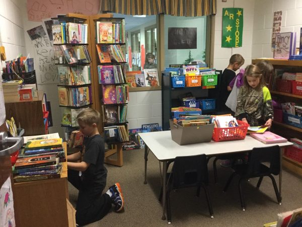 Students earn Book Bucks in several ways. The most common is by passing Accelerated Reading quizzes on the books they read. They also earn by meeting their individual reading goals, doing “Ten Book Challenges,” and mastering math facts. They save their “money” for a variety of things, none of which are cheap trinkets that would quickly end up in a landfill. From having lunch with a teacher to reading to kindergarten classes to being a library helper, students make choices about how to spend their Bucks. By far, however, the most popular choice is to go shopping for books in the Book Boutique. Our program is successful, and our readers are happy. That said, we sometimes field questions from outside our community about why we don’t just give the books away and dump the token economy. The answer is simple—we want our students to experience the pride that comes with meeting goals, and we believe that students value what they earn. “I feel so proud when I earn Book Bucks and get to buy books,” says second grader Kelsey Chelberg.Building the Book Boutique