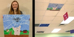 A past EJK Mini-Grant was awarded to 7th and 8th graders from Simons Middle School in Flemingsburg, KY. They painted images from their favorite books onto 24x 24–inch ceiling tiles (pictured). The program added 25 tiles to the school library ceiling, giving it a little literary color and character.