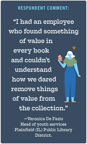 “I am conscious about making my collection equitable and inclusive,” Becca Rutkowski, youth collection librarian at Mount Prospect (IL) Public Library, wrote in a survey comment. “I want to buy books that represent my diverse community.”