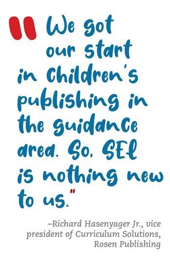 “We actually got our start in children’s publishing in the guidance area,” says Richard Hasenyager Jr., PhD, vice president of Curriculum Solutions for Rosen. “So SEL is nothing new to us.” That was over 70 years ago. Today, the company puts out 1,200 new titles a year, spanning from pre-K to 12+, both fiction and nonfiction across a wide array of topics, while staying true to their SEL roots.