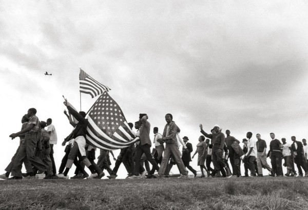 Freedom Marchers with Flags, 1965. Photo by Matt Heron
