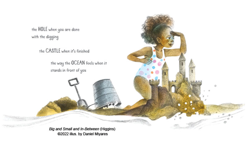 Higgins, Carter. Big and Small and In-Between. illus. by Daniel Miyares. Chronicle.