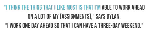 In addition to an improved social scene, Dylan likes the self-pacing of online learning.