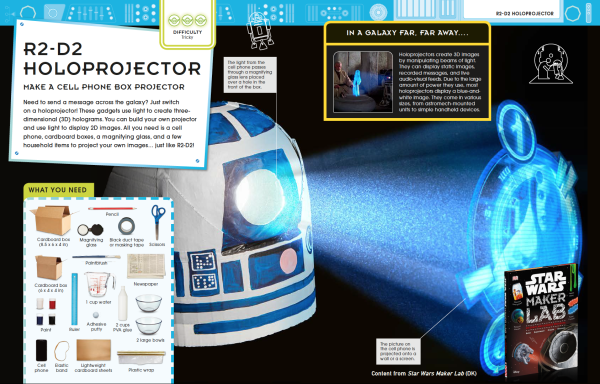 DK's Star Wars (TM) Maker Lab is chock-full of clever crafts and stunning science projects, encouraging curious kids to explore the real-world science of their favourite gadgets and vehicles. Download the step-by-step holoprojector project sheets below, and learn about the behaviour of light and lenses (and galactic message-sending, of course!)