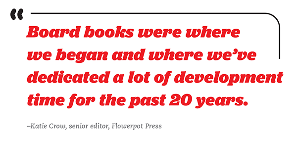 “Board books were where we began and where we’ve dedicated a lot of development time for the past 20 years,” explains Senior Editor Katie Crow. “Board books are that first avenue into readers. Board books teach kids how to read a book, how to hold a book, and how to interact with a book.”