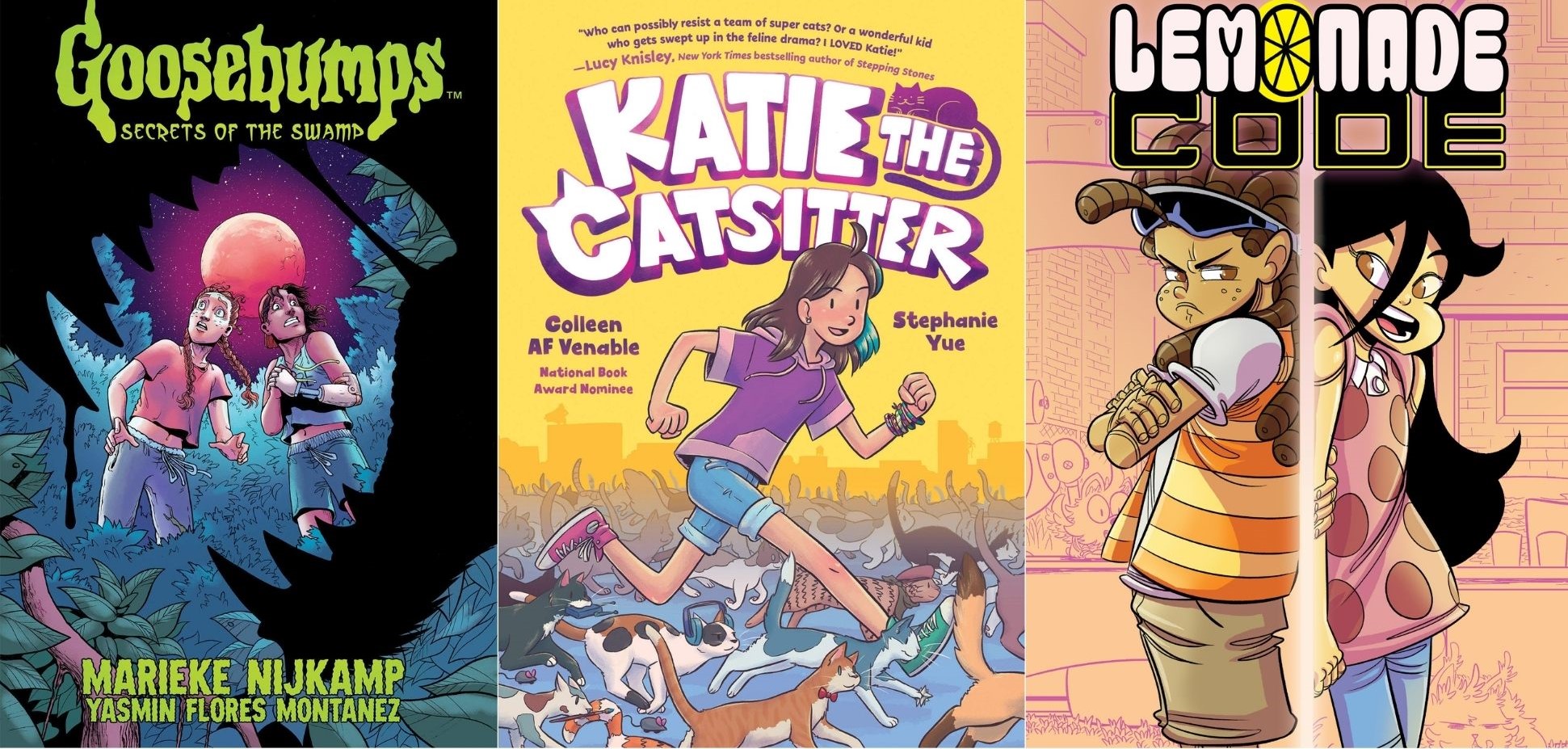 Whether kids want to vicariously experience summer camp shenanigans, learn about the ultimate lemonade stand rivalry, or get a head start on Halloween with vampires and werewolves, there's something in these middle grade graphic novels for everyone.