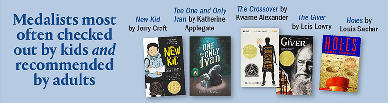 The Newbery is an “award for literary quality,” but that doesn’t always translate to widespread popularity. We asked poll participants to name the books that are most popular with kids. In a separate question, respondents named the books they most often recommend to young readers. New Kid and The One and Only Ivan led both categories. The kids’ choices leaned heavily toward newer titles, while the top adult recommendations reached back as far as the 1960s. Despite this, the same five books were named as the most popular with children and the most often recommended by adults.