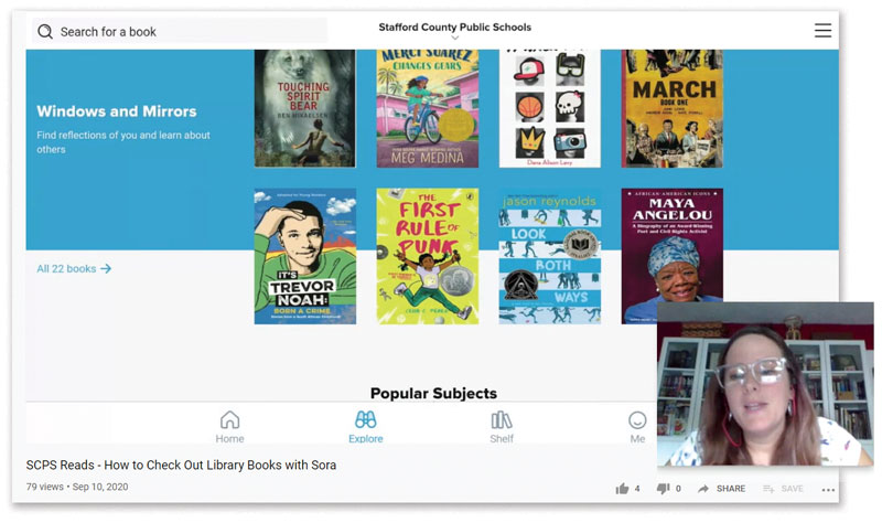 In a video featured on school district media platforms, Mary Oliver-Pruitt, librarian at Dixon-Smith Middle School in Fredericksburg, VA, shows how students can check out ebooks with Sora. |