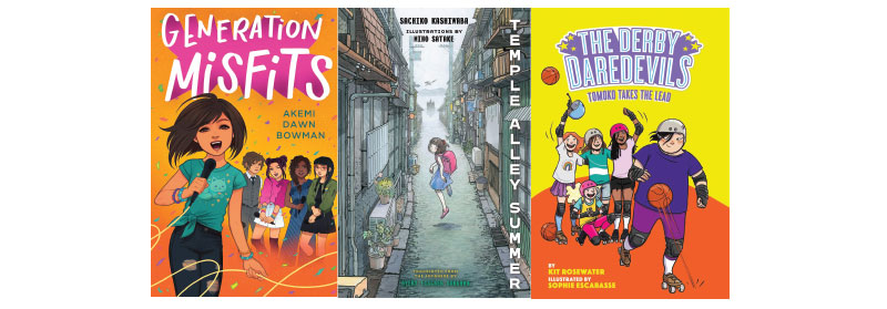 These varied titles explore connections to Japan and Japanese culture in unique ways. In Bowman’s Generation Misfits, new student Millie stumbles into school drama and lasting friendships when she joins a Japanese cultural appreciation club and sets out to form a J-pop cover band, while roller derby player Tomoko learns how to overcome her shyness and show up for her team in Rosewater’s Tomoko Takes the Lead. From Kashiwaba, the author whose work inspired the film Spirited Away, Temple Alley Summer’s gently spooky ghost tale centers Kazu, a boy who discovers the true meaning of living on Kimyo Temple Alley when apparitions start frequenting his home.