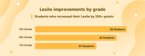 In just the first four months of their school year, Mitchell County Middle School students showed widespread reading engagement through Beanstack, with more than 70% of students logging reading between August and December. To gauge reading improvement, Mitchell County’s school leaders used individual assessments from NWEA’s MAP Suite and an aggregate Lexile value for the school. The school’s total Lexile value increased nearly 10% from the fall to the winter, from 195,650L to 214,445L. And when they looked at individual Lexile scores, about one-third of their students improved by more than 150L.