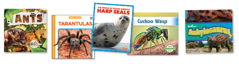 The overall quality level of the 12 series above is high. Most sets will strengthen collections, depending on subject and age level needs. Among the straightforward animal profiles, “Spotlight on Nature” (Creative Education) is a first choice for older readers, while “The World of Ocean Animals” stands out for slightly younger kids. Two fine arthropod series cover common insects (Greenhaven/KidHaven’s “Bugs”) and more unusual ones (Abdo/Abdo Kids Jumbo’s “Incredible Insects”). On the lighter side, “Animal vs. Animal” (Gareth Stevens) and Bearport’s “Library of Awesome Animals” successfully combine humor and fun facts in engaging, but very different presentations.